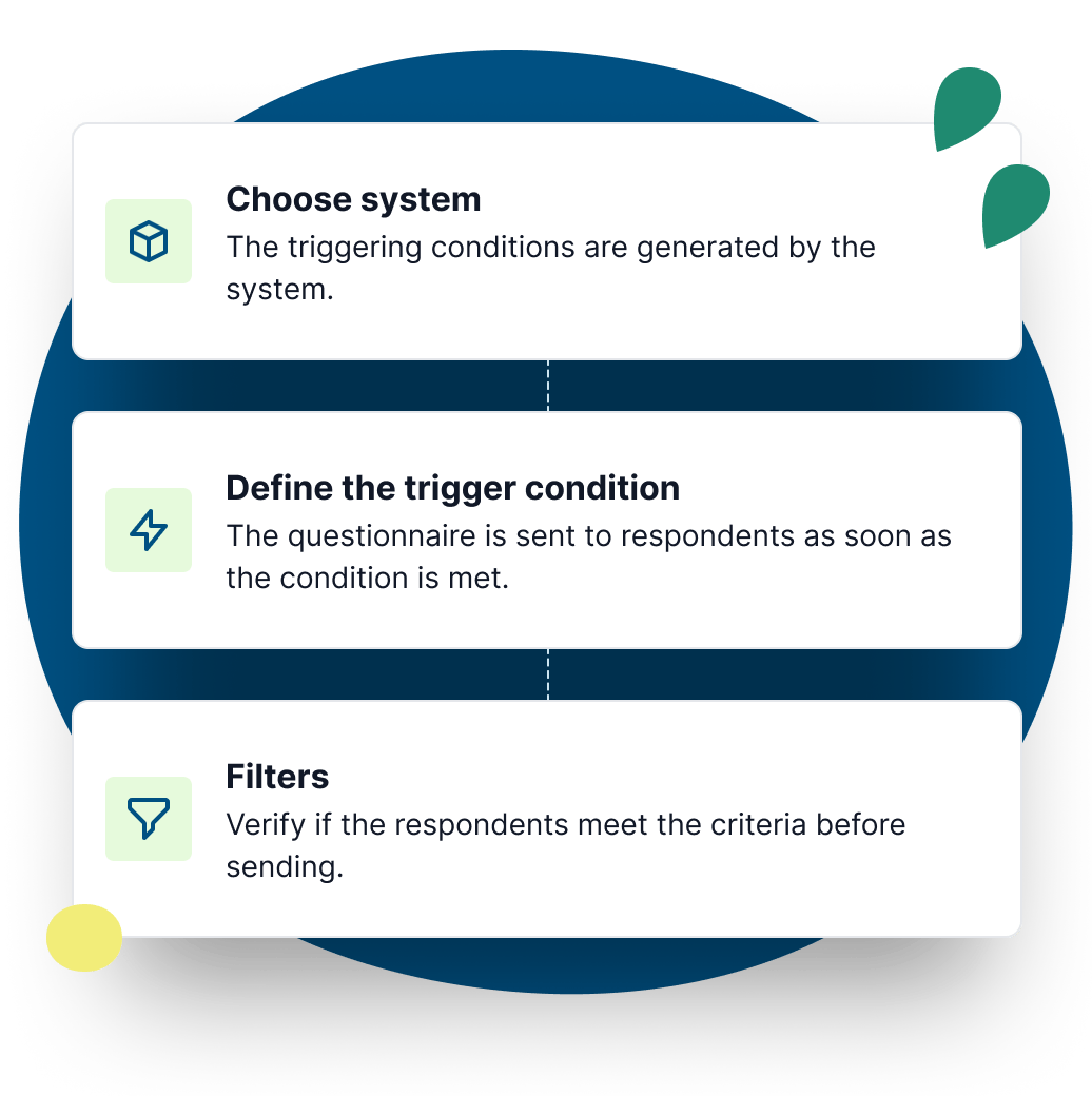 Send questionnaires according to a predefined schedule, without manual intervention. Compare the results obtained at different times points to monitor the evolution of the patient's state of health.