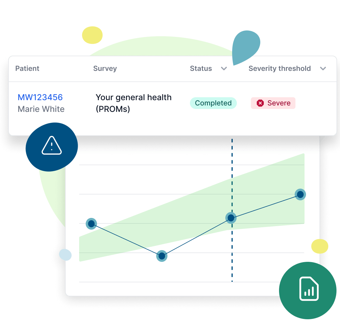 Receive and analyze patient responses in real time with our integrated dashboard. Track trends, evaluate individual and overall results from different questionnaires, and identify patients requiring special attention.